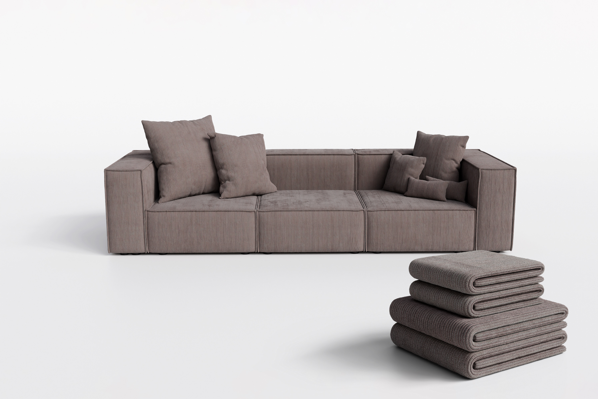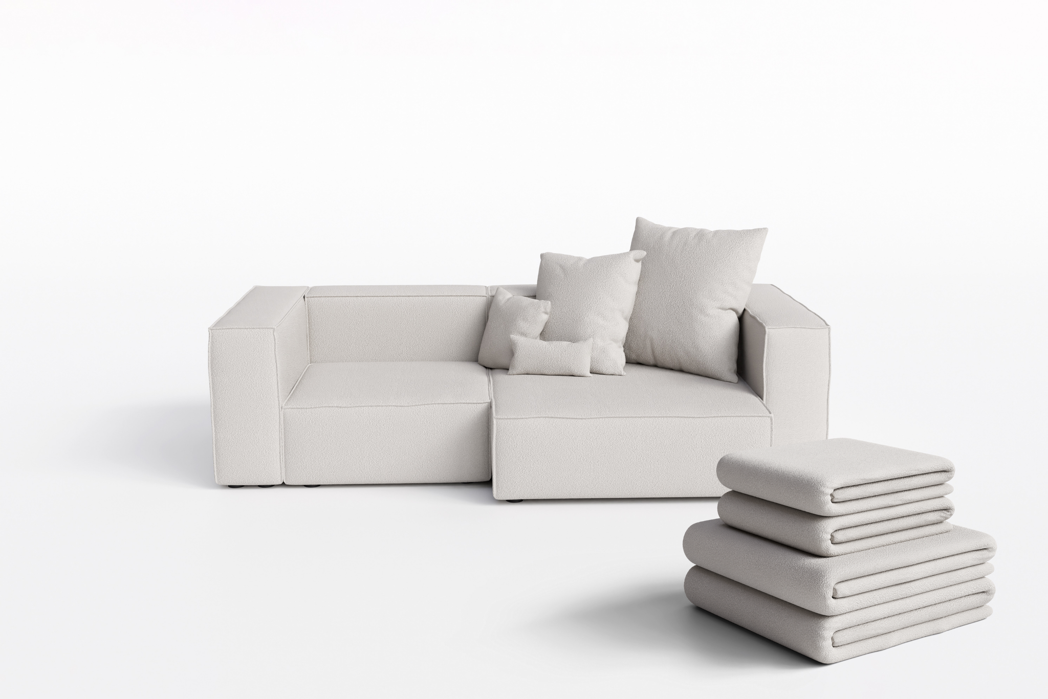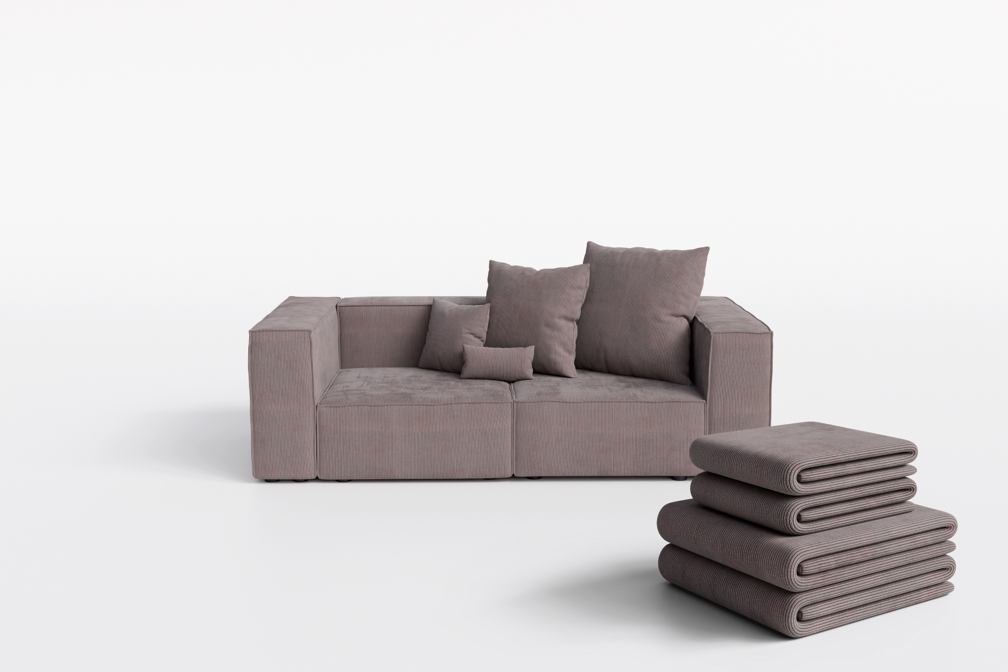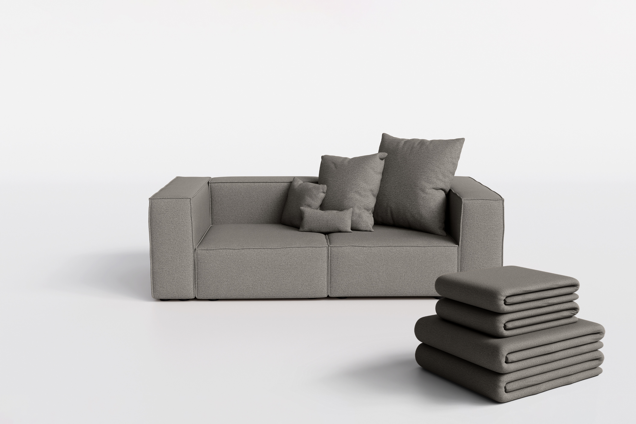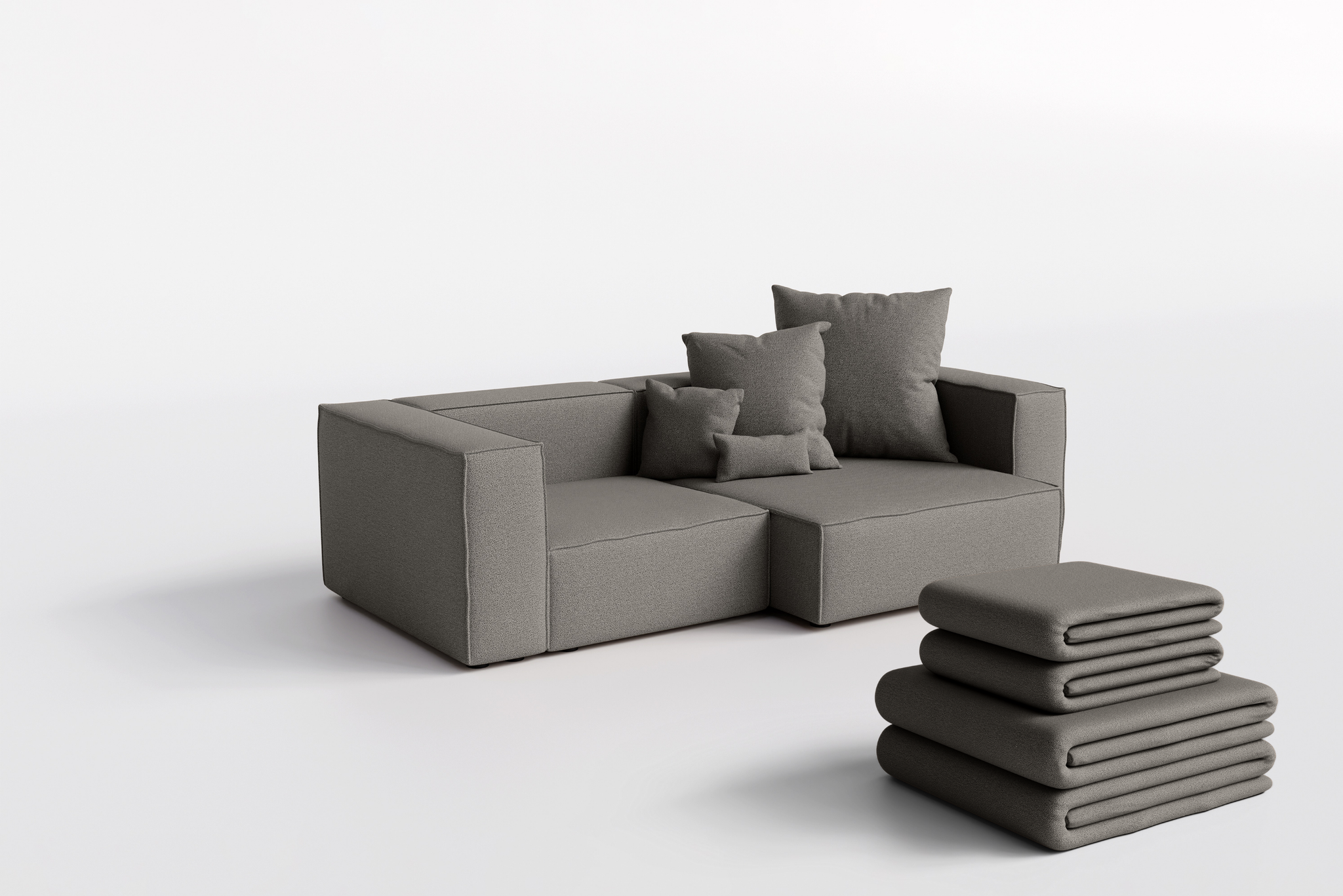 - Das gewählte Sofa als einzelne Module – bereits mit dem gewählten Stoff bezogen