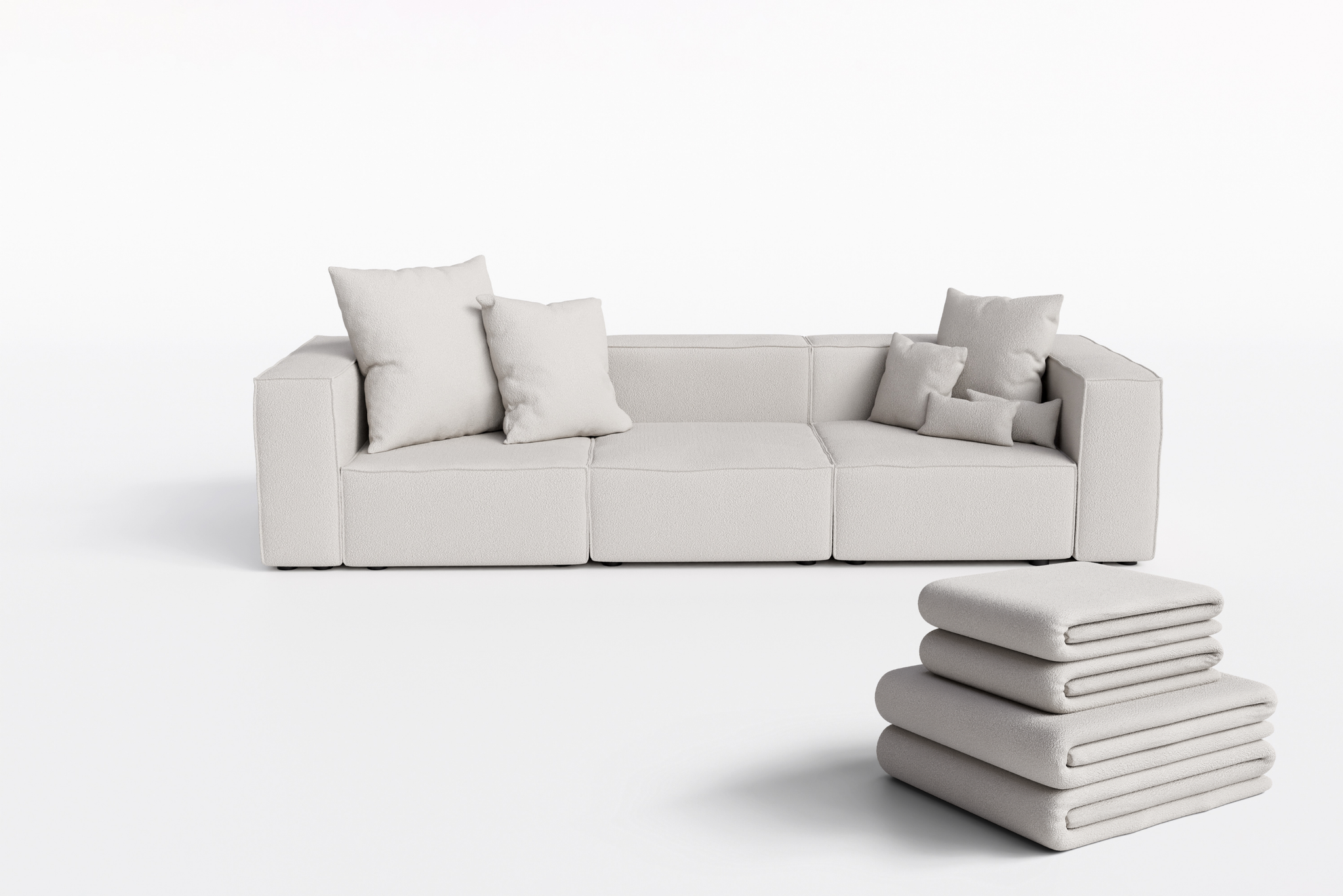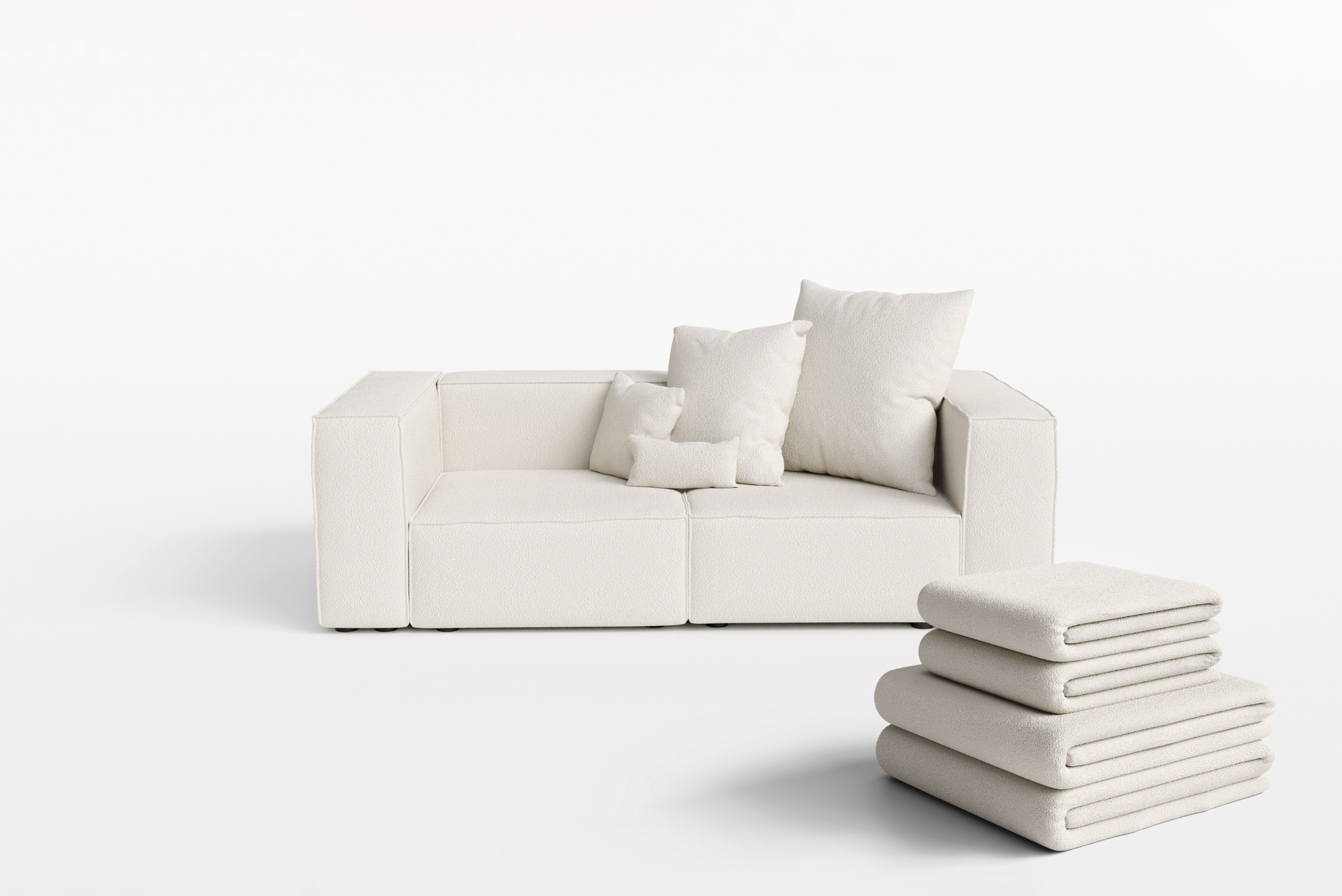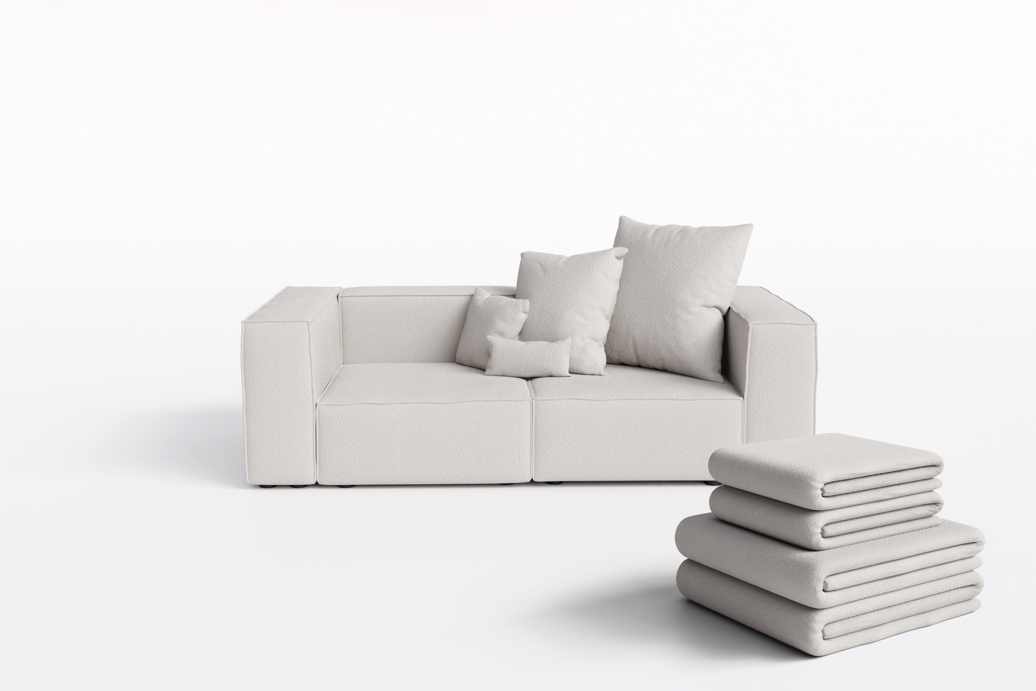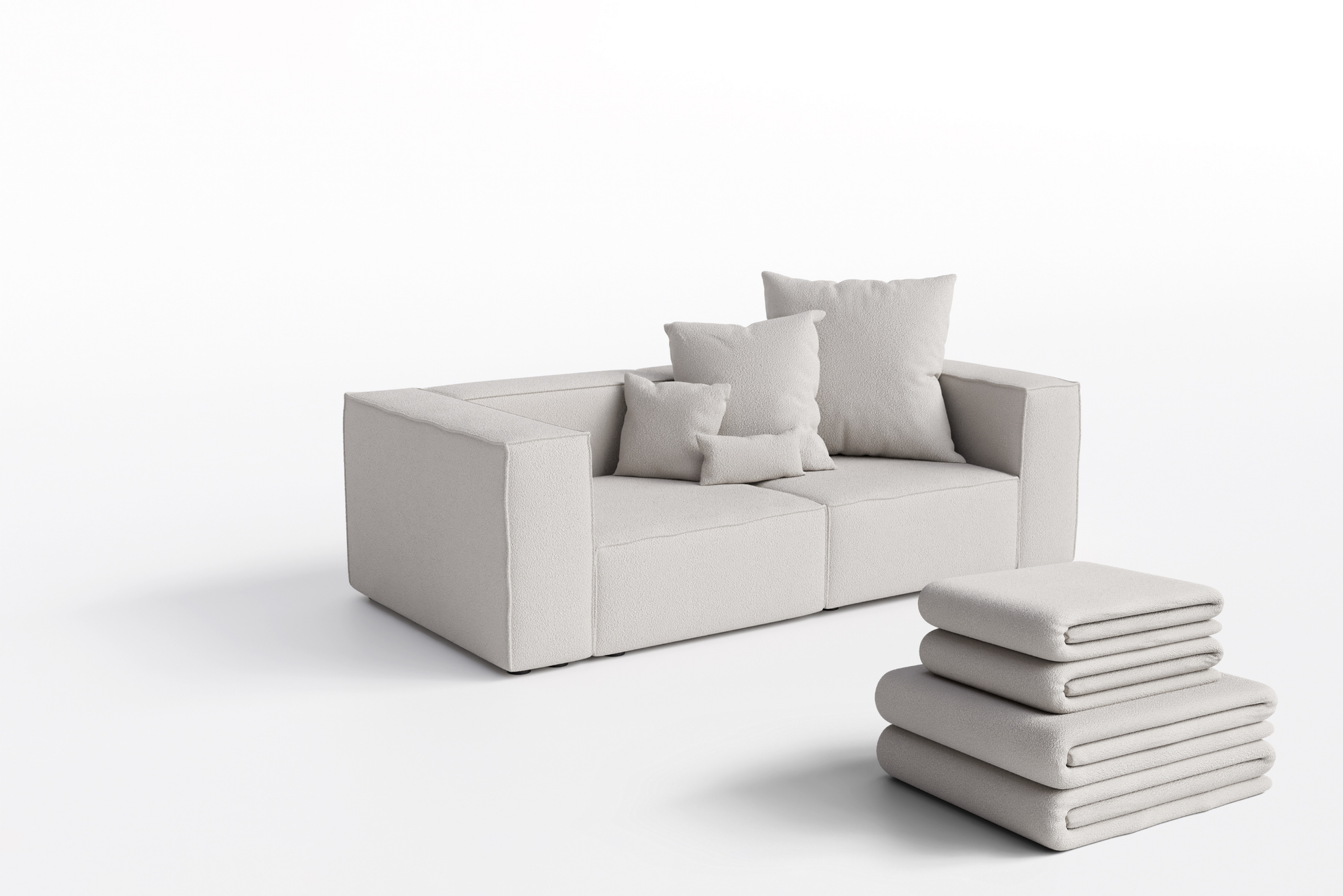 - Das gewählte Sofa als einzelne Module – bereits mit dem gewählten Stoff bezogen