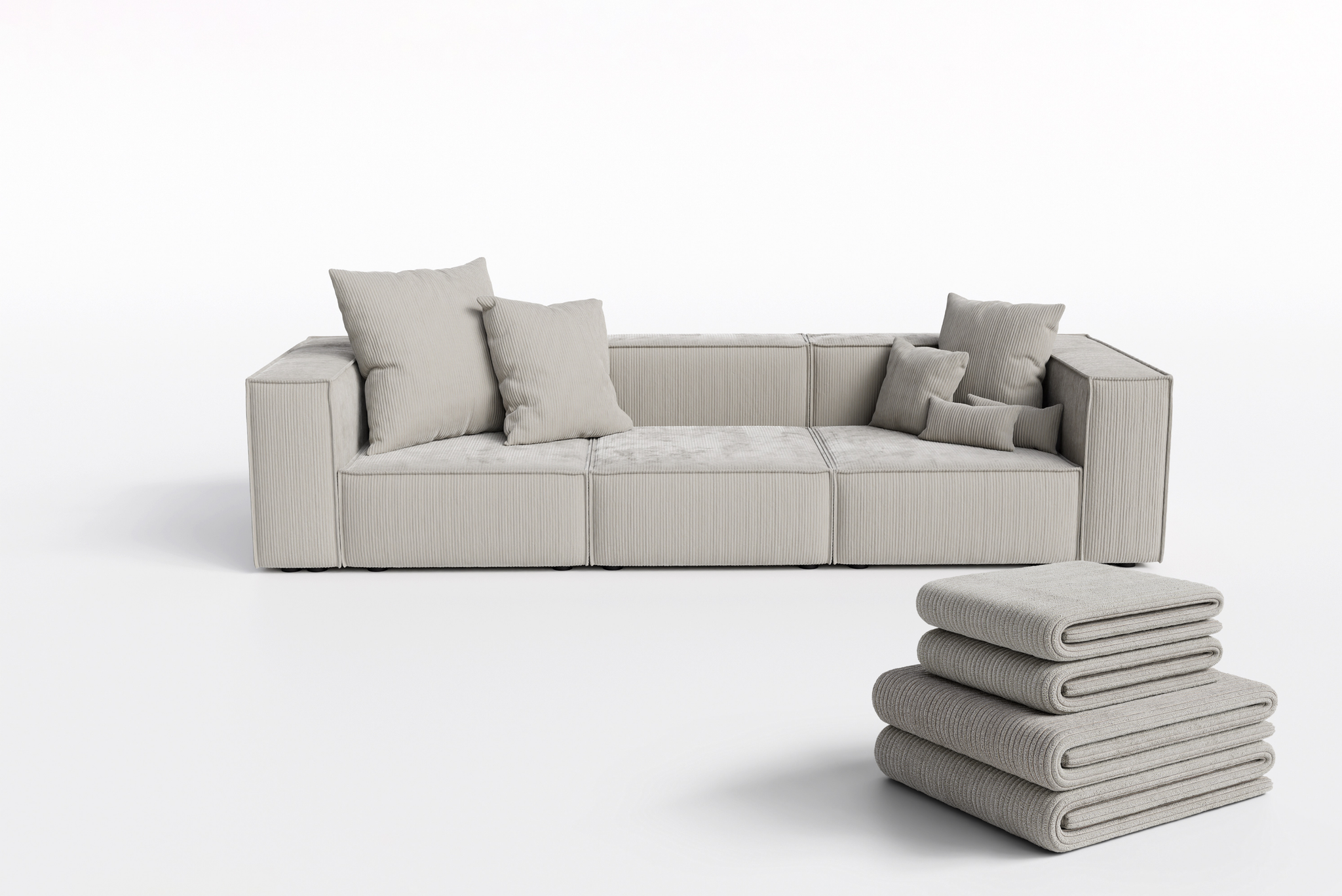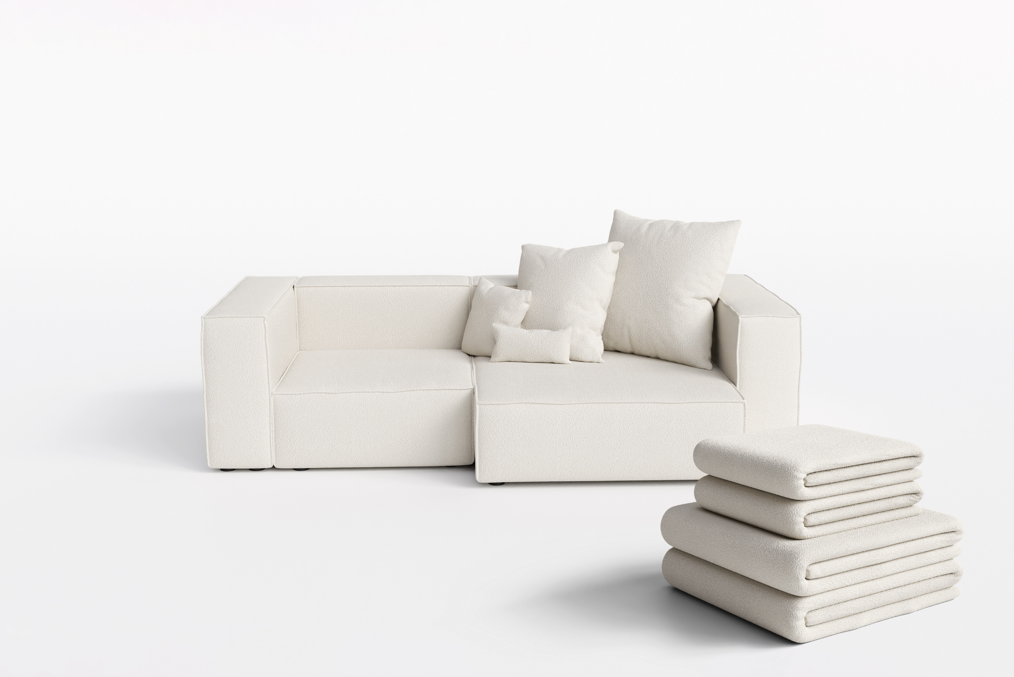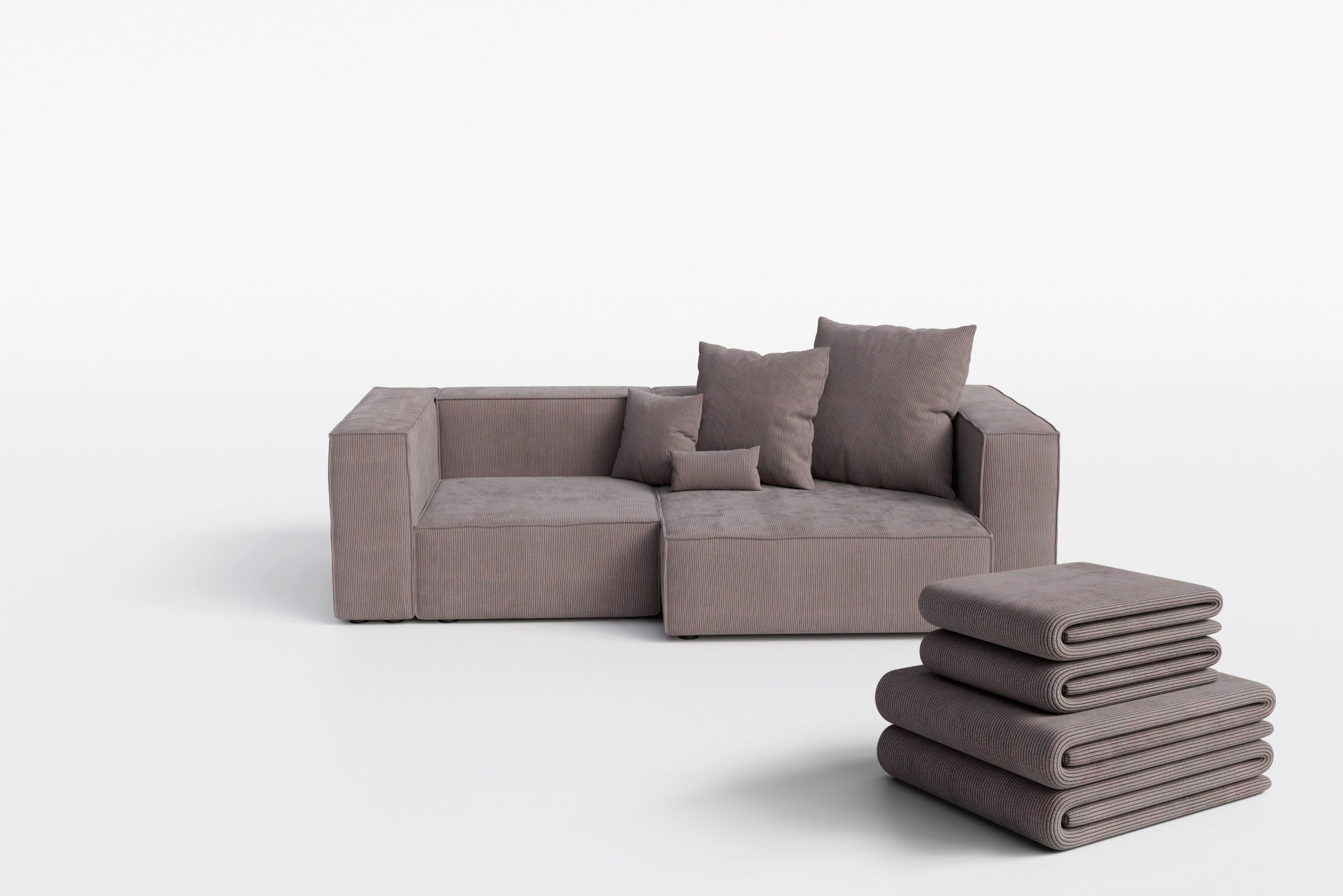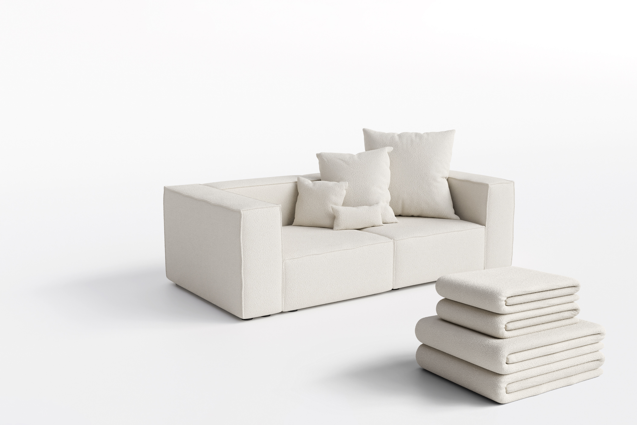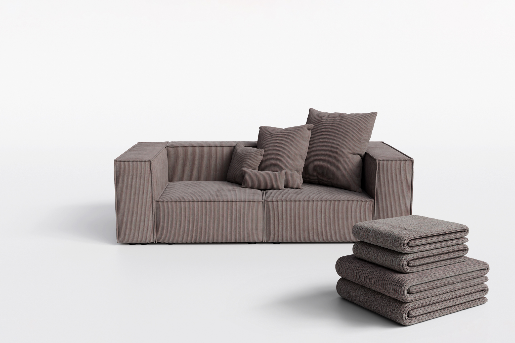 - Das gewählte Sofa als einzelne Module – bereits mit dem gewählten Stoff bezogen