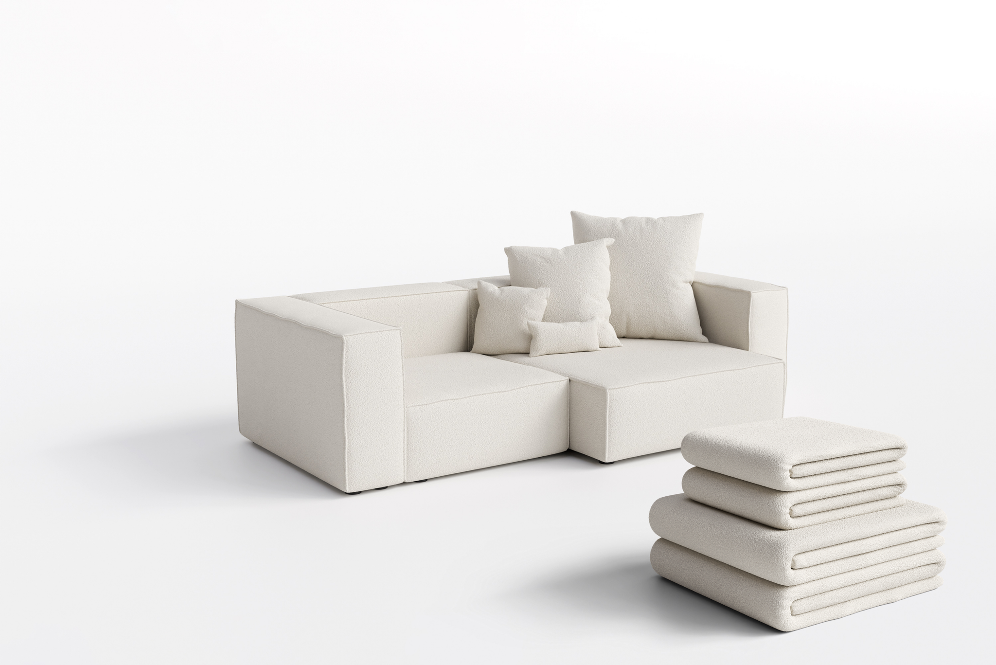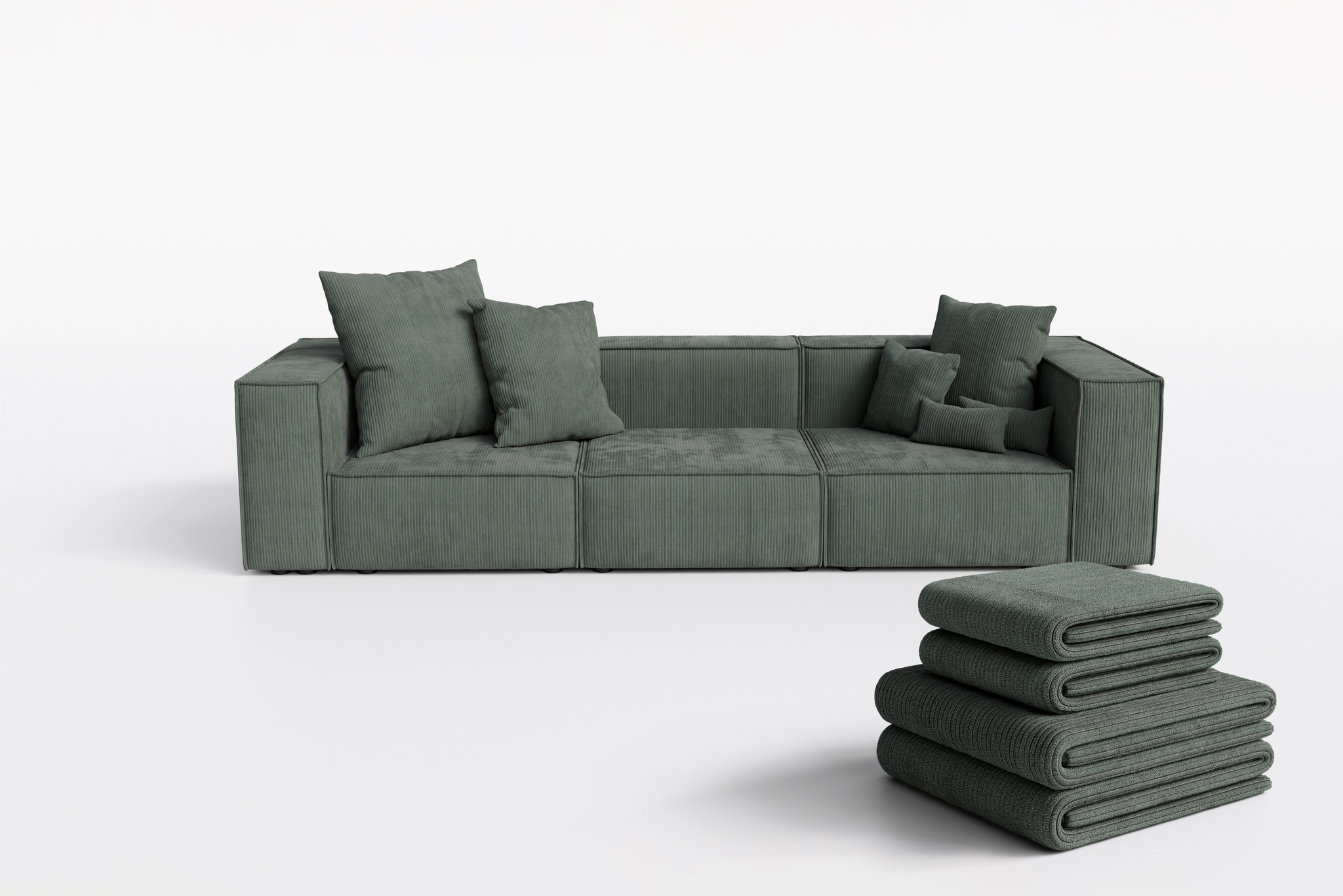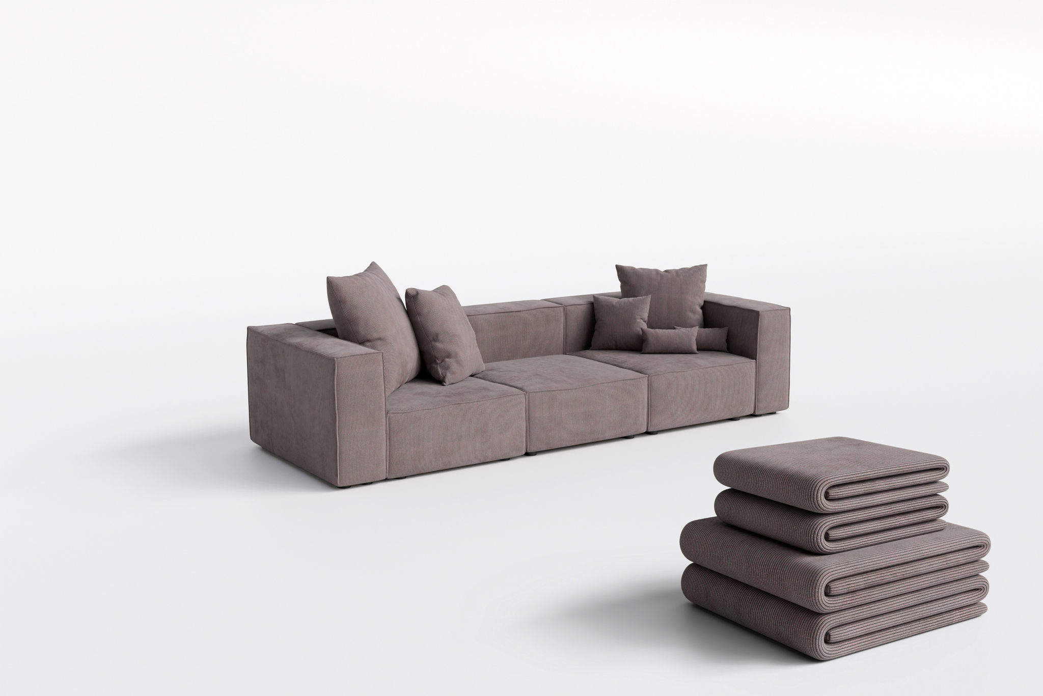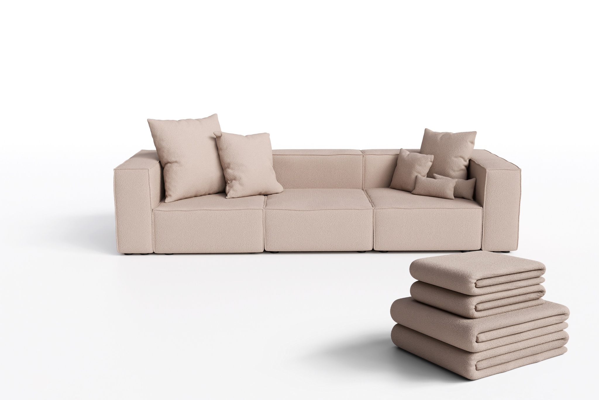 - Das gewählte Sofa als einzelne Module – bereits mit dem gewählten Stoff bezogen