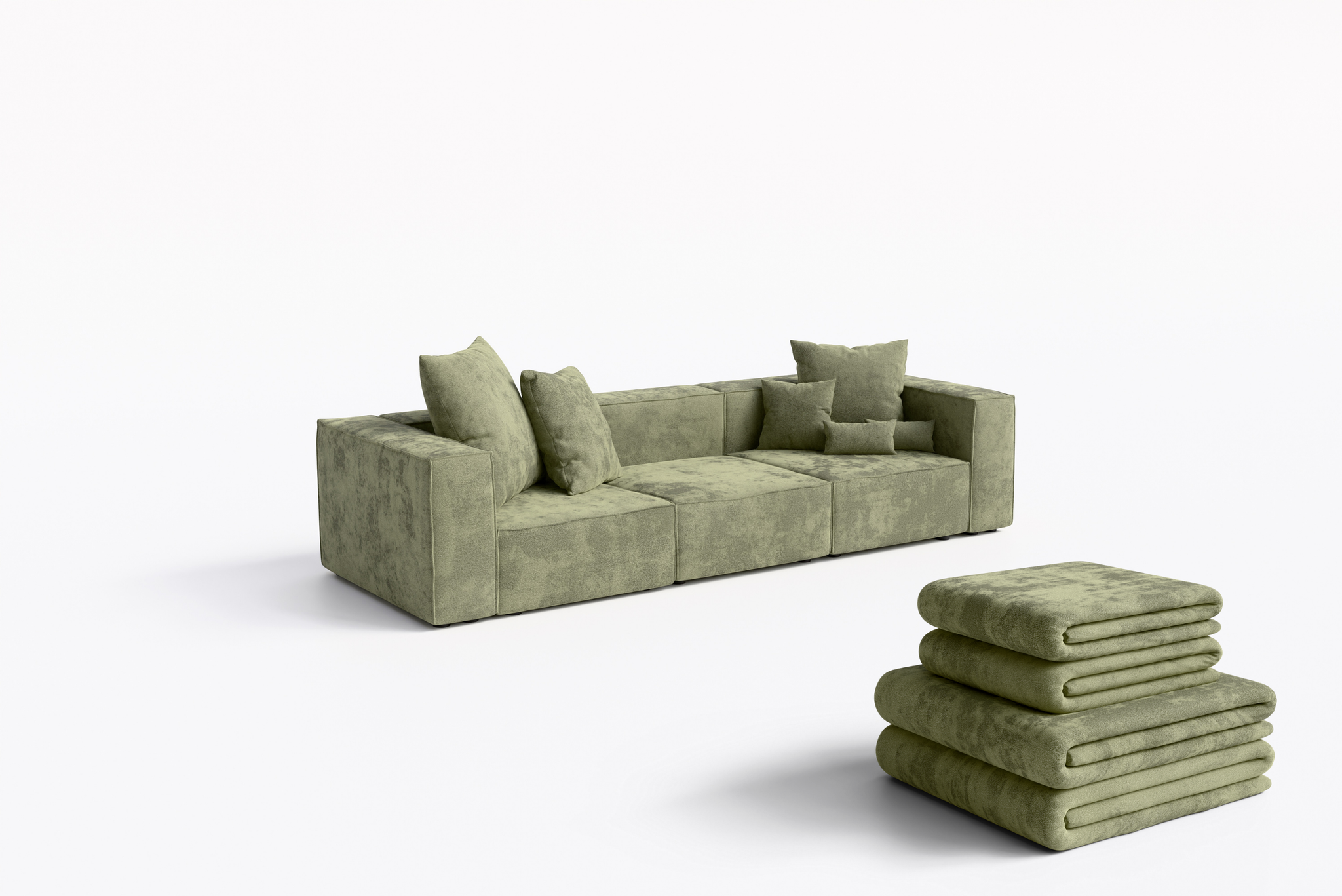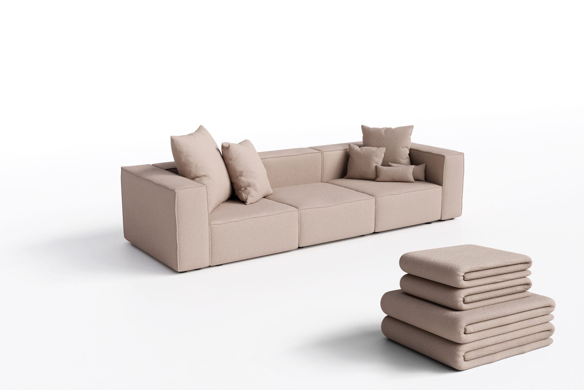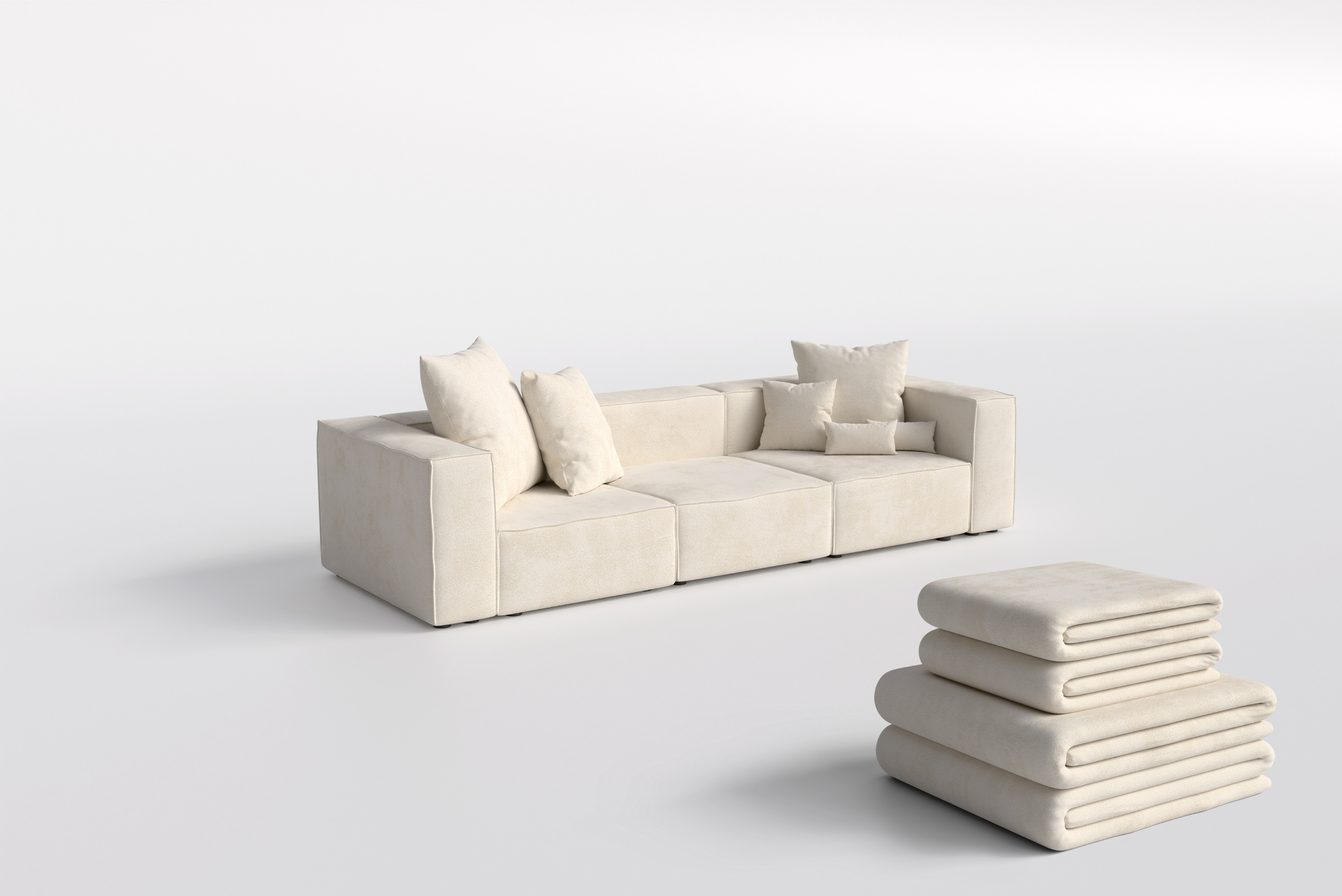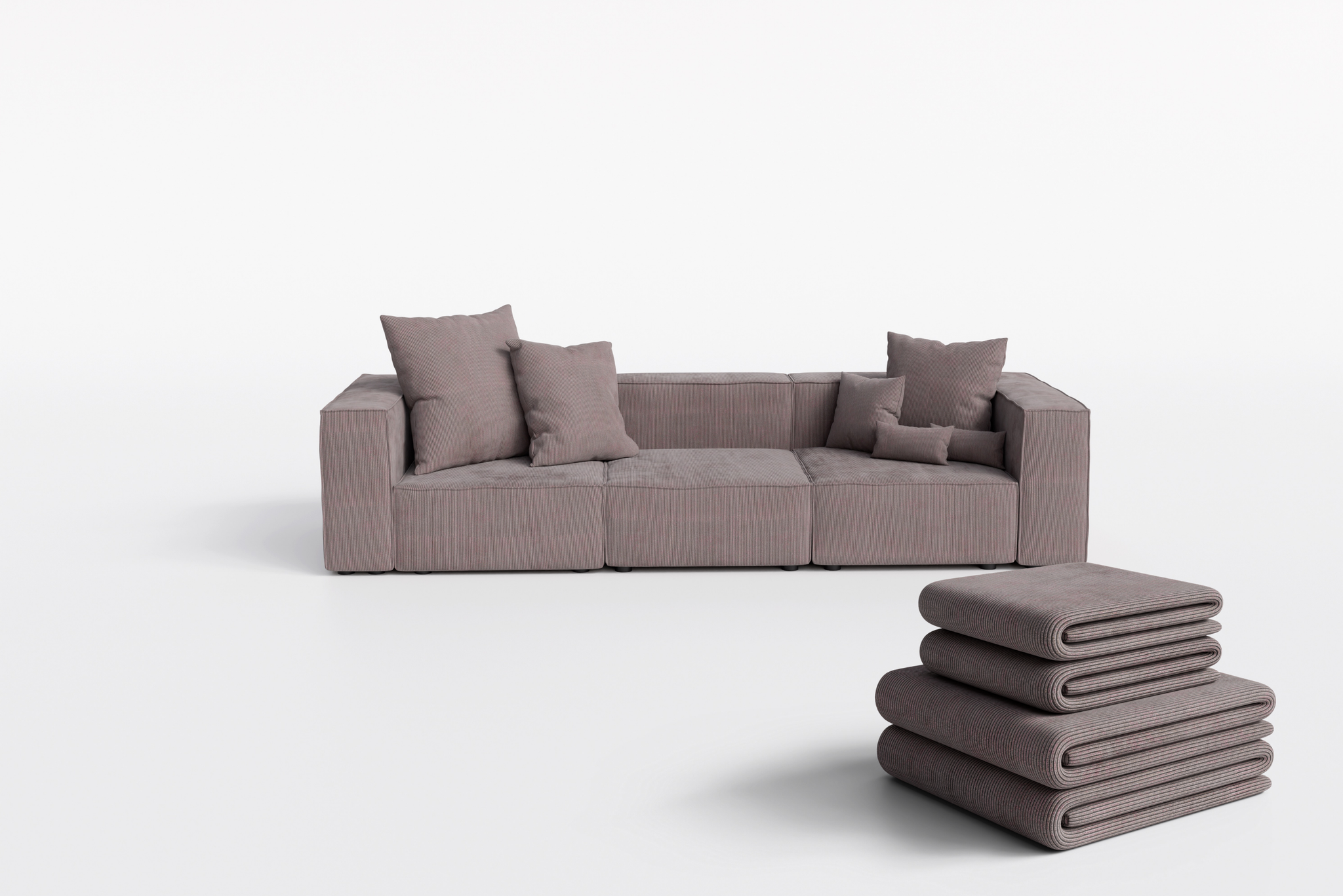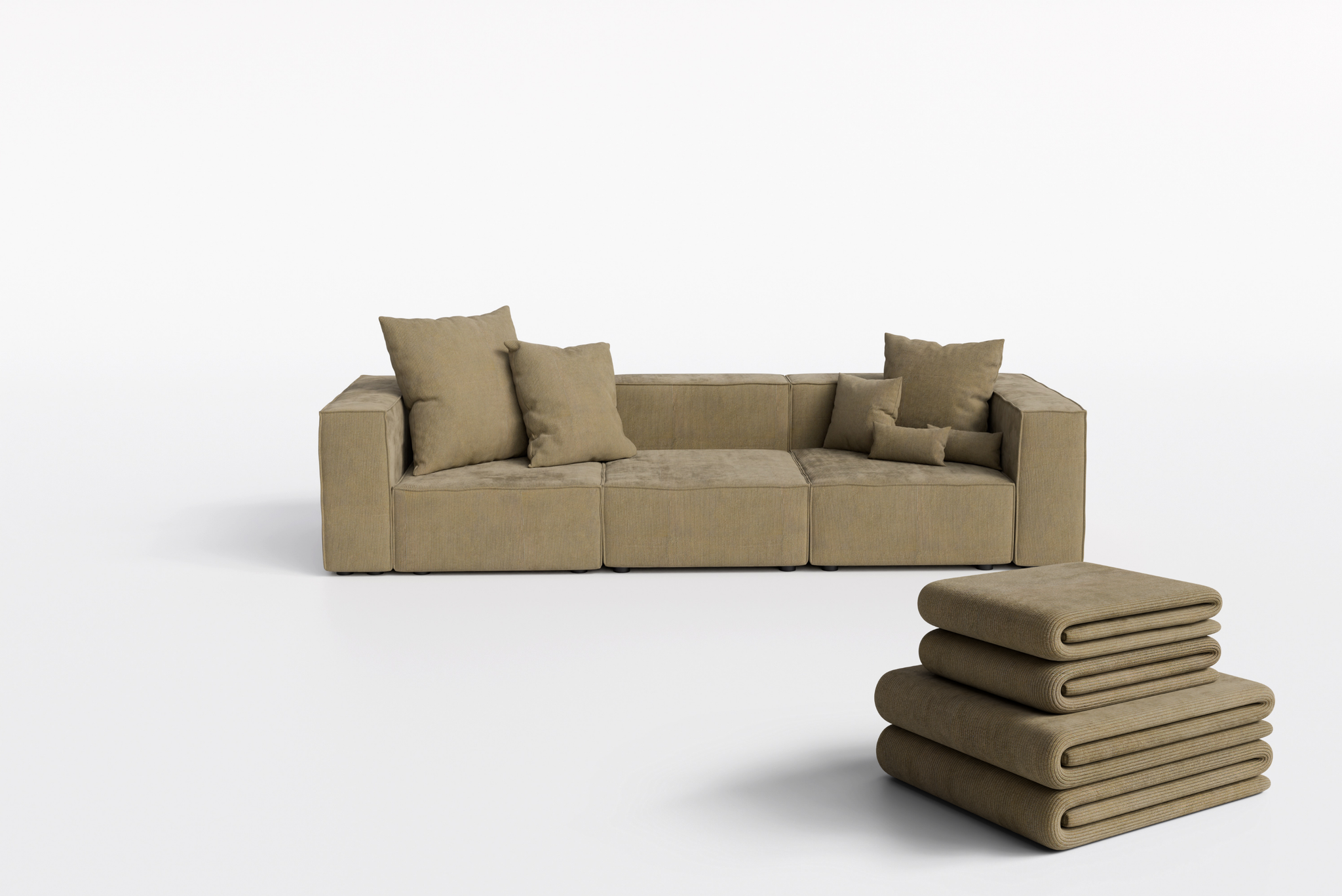 - Das gewählte Sofa als einzelne Module – bereits mit dem gewählten Stoff bezogen