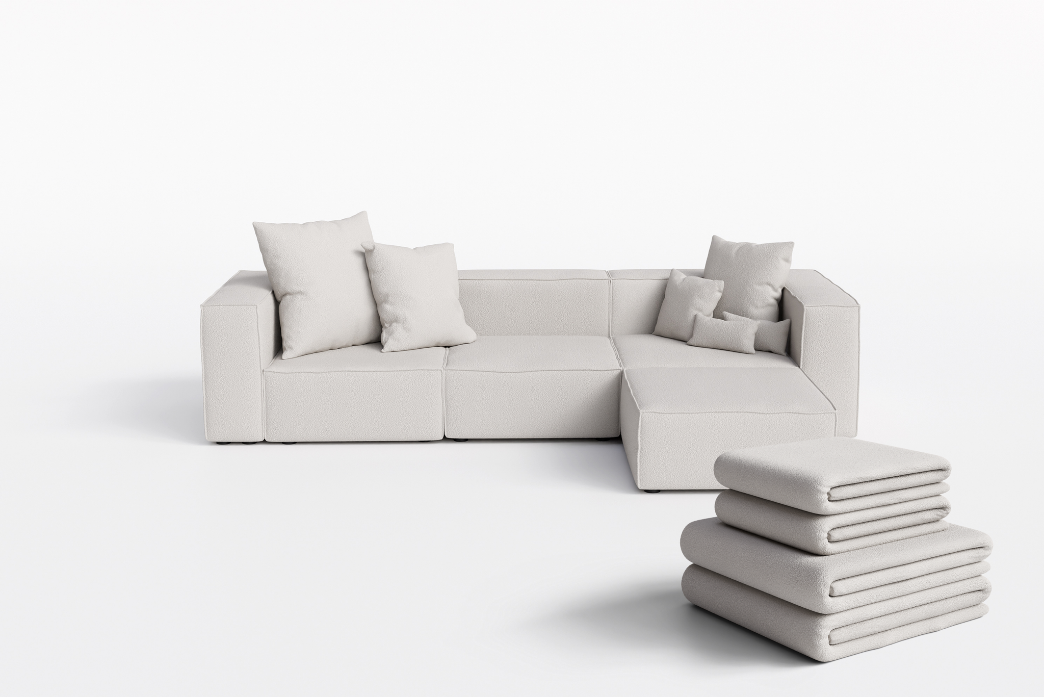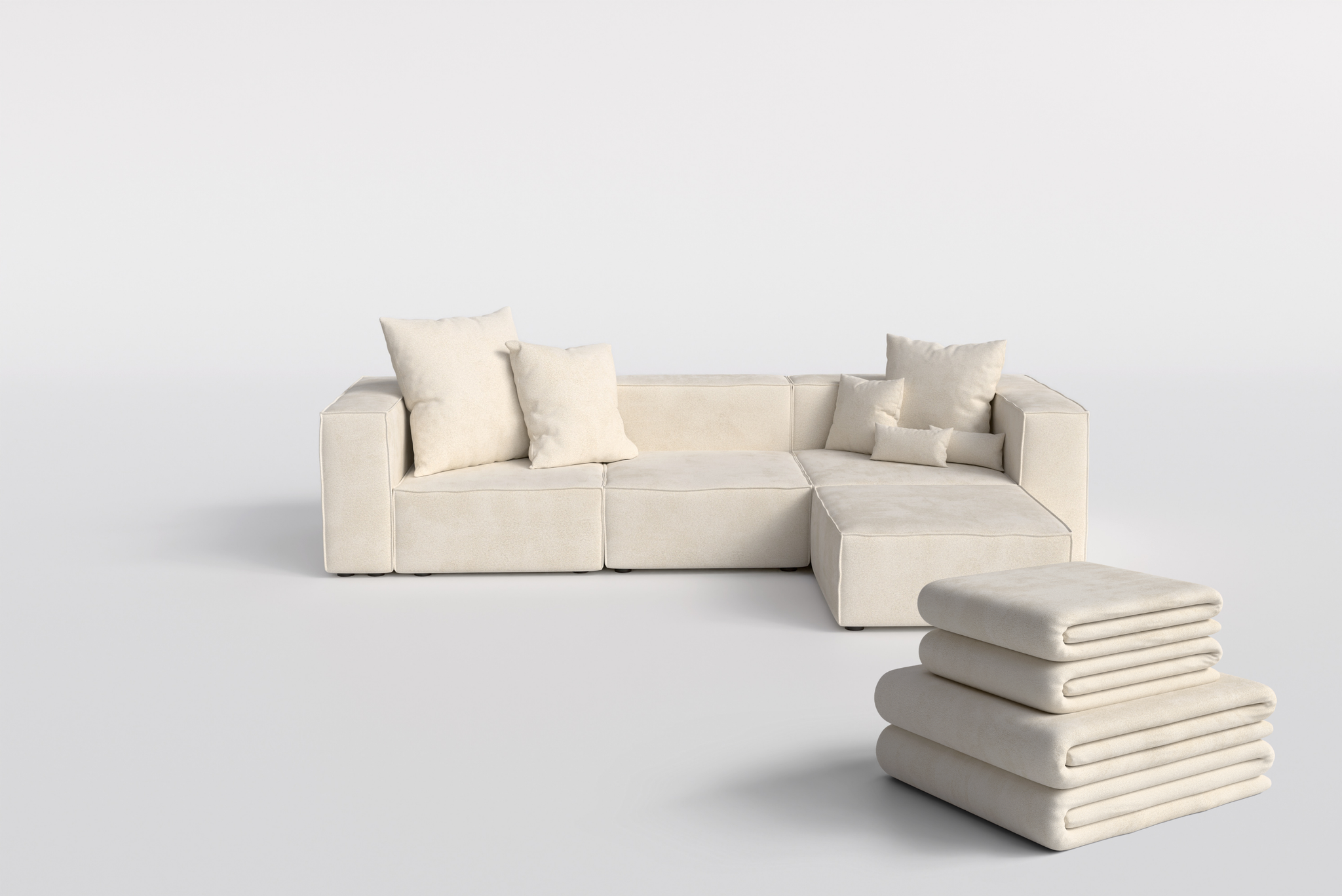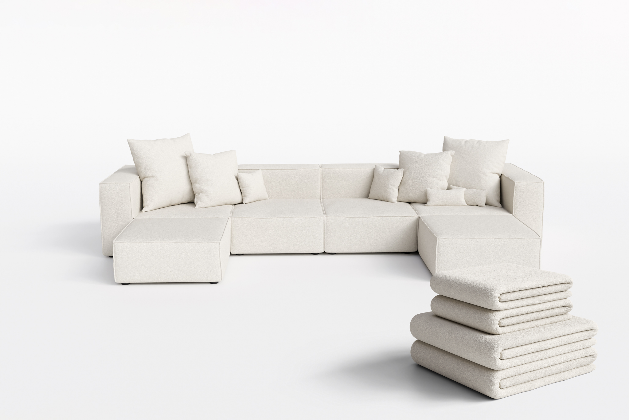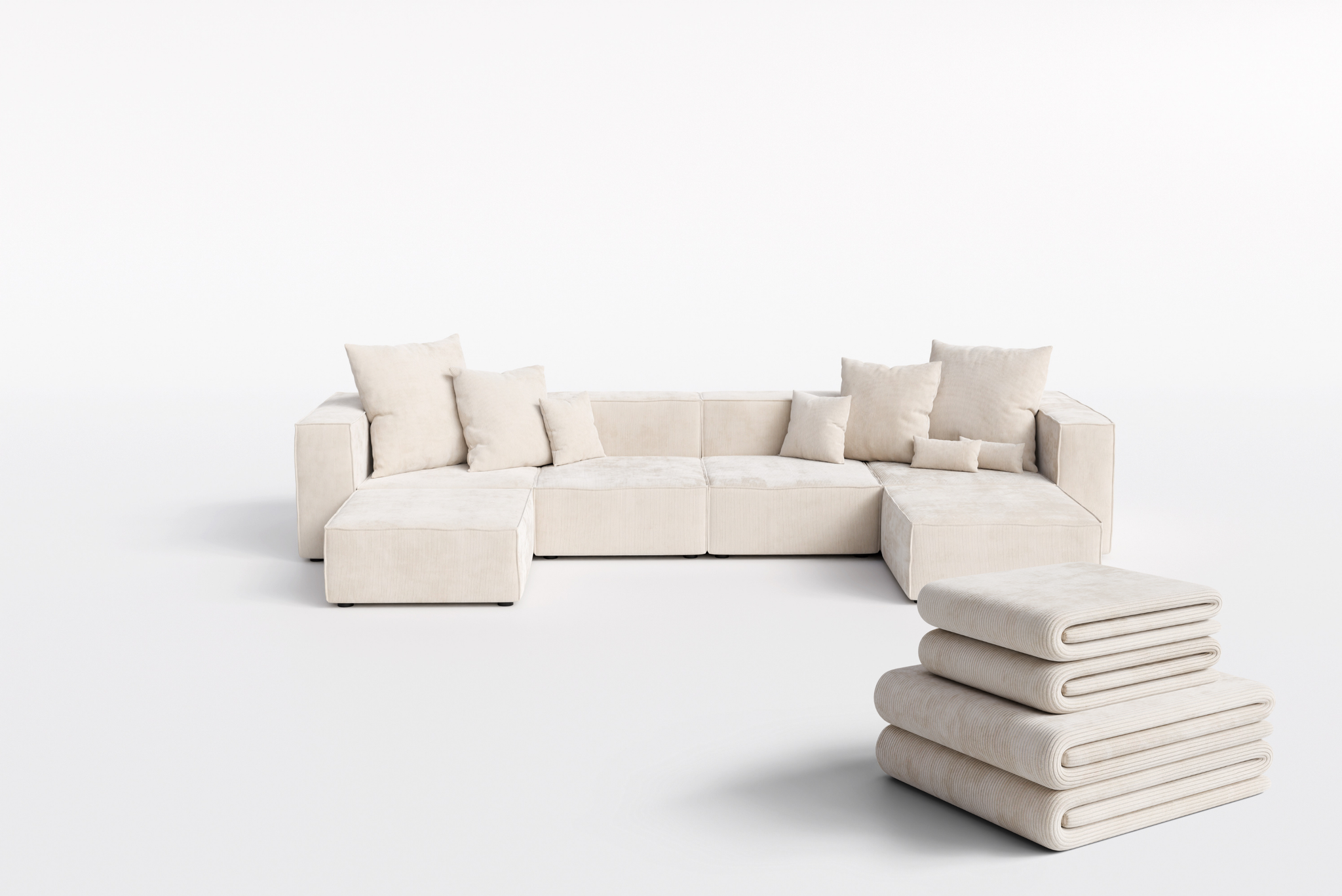 Unser modulares Sofakonzept eröffnet dir grenzenlose Freiheit. Ob großzügige Wohnlandschaft, gemütliches Ecksofa oder kompakter Zweisitzer – mit nur wenigen Handgriffen verwandelst du dein Sofa in genau die Form, die du gerade brauchst.