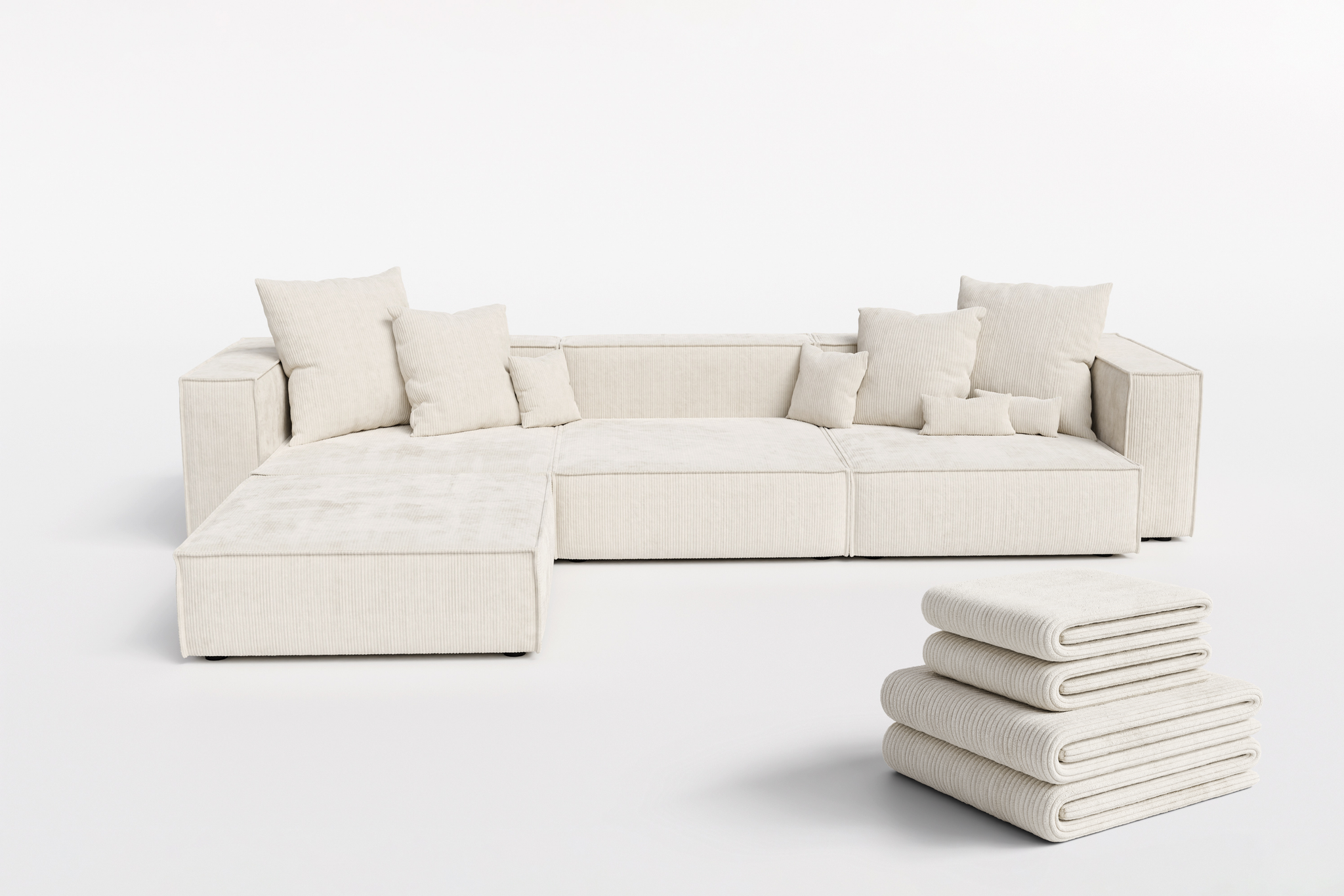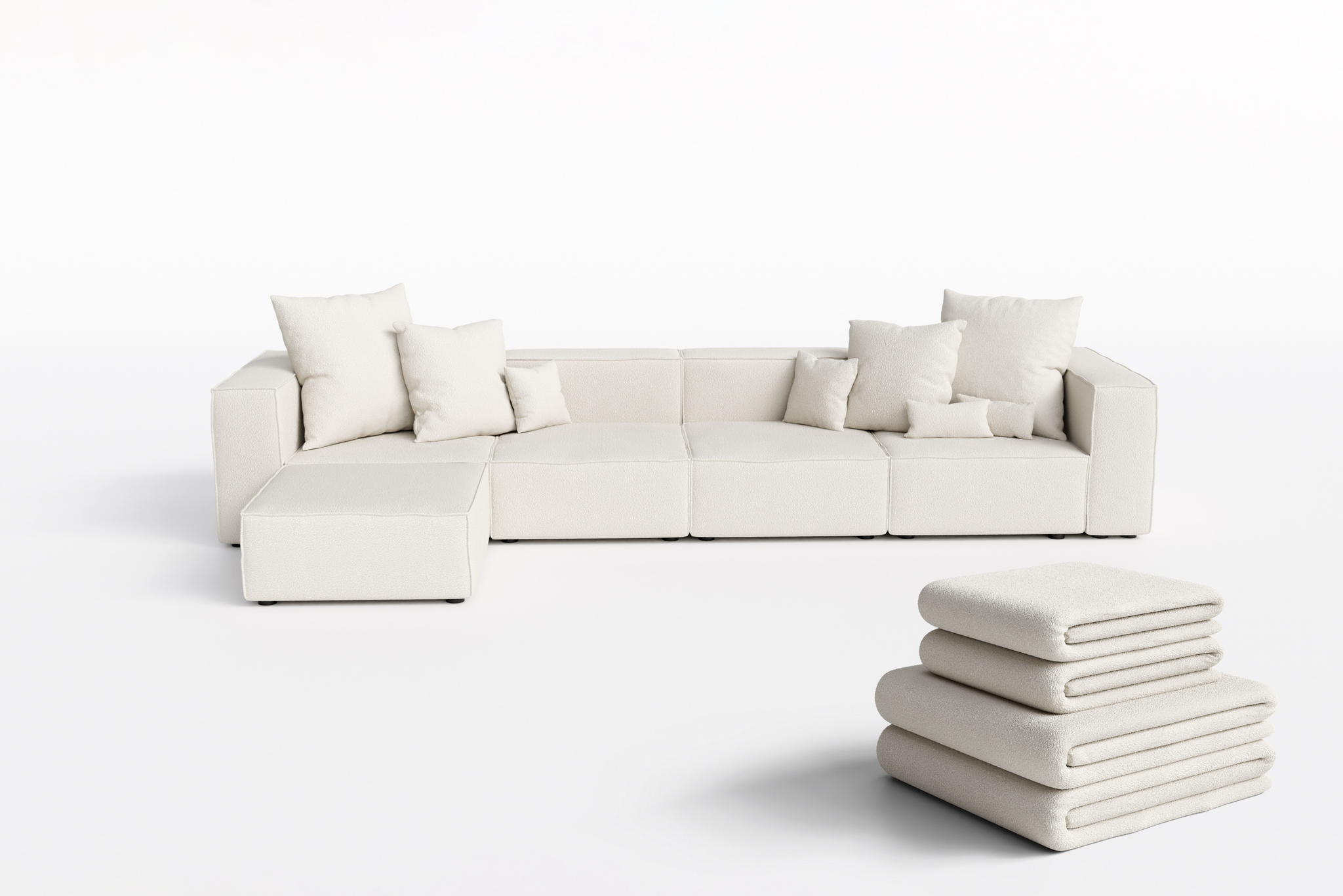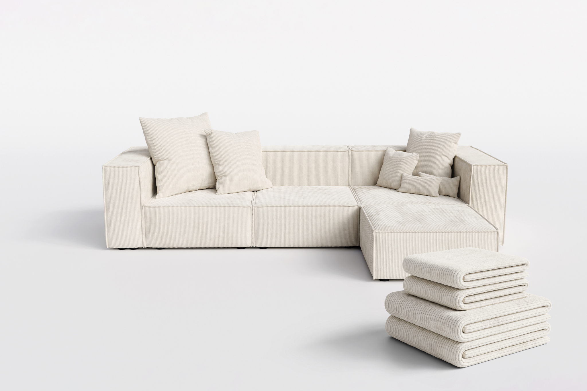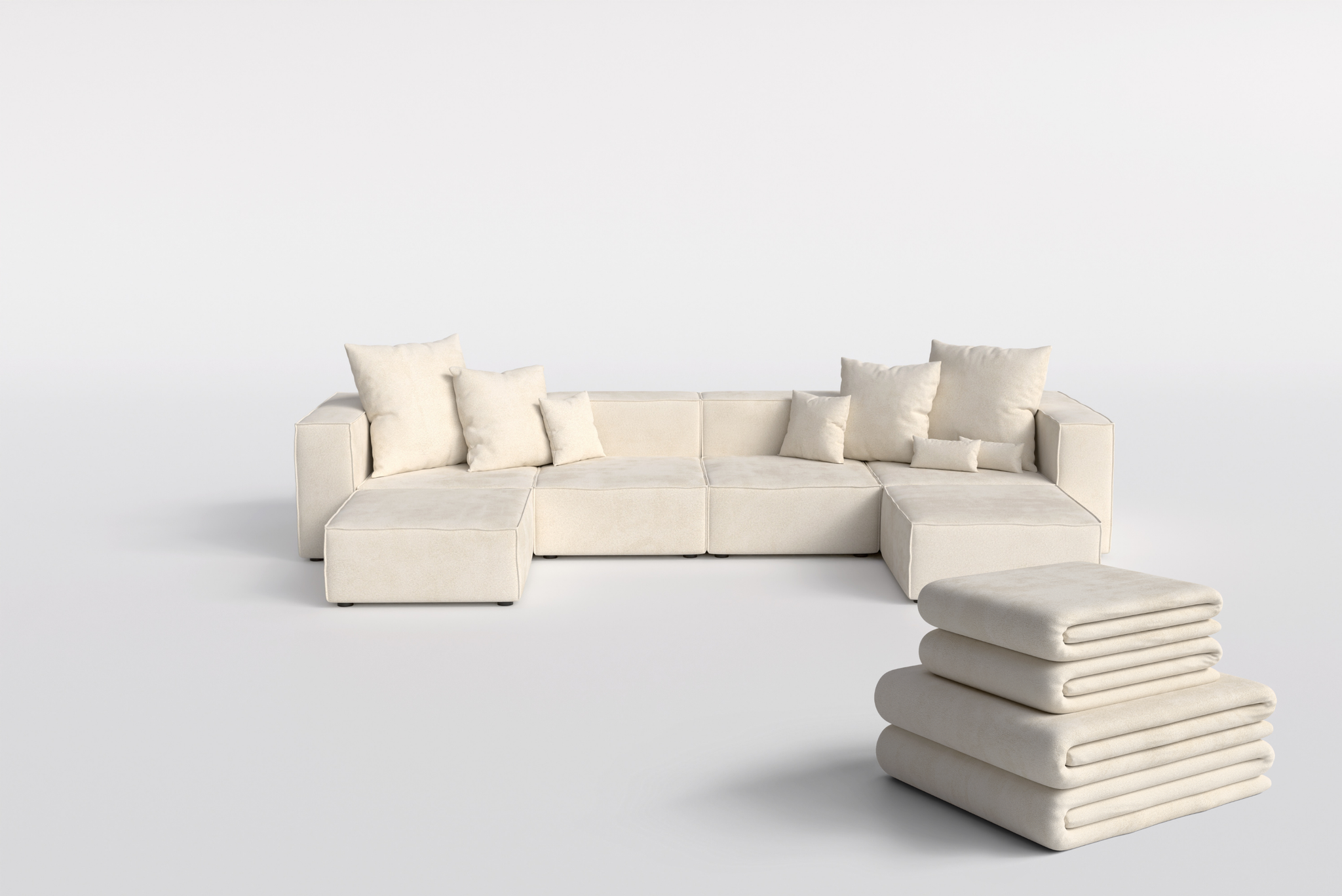 Unser modulares Sofakonzept eröffnet dir grenzenlose Freiheit. Ob großzügige Wohnlandschaft, gemütliches Ecksofa oder kompakter Zweisitzer – mit nur wenigen Handgriffen verwandelst du dein Sofa in genau die Form, die du gerade brauchst.