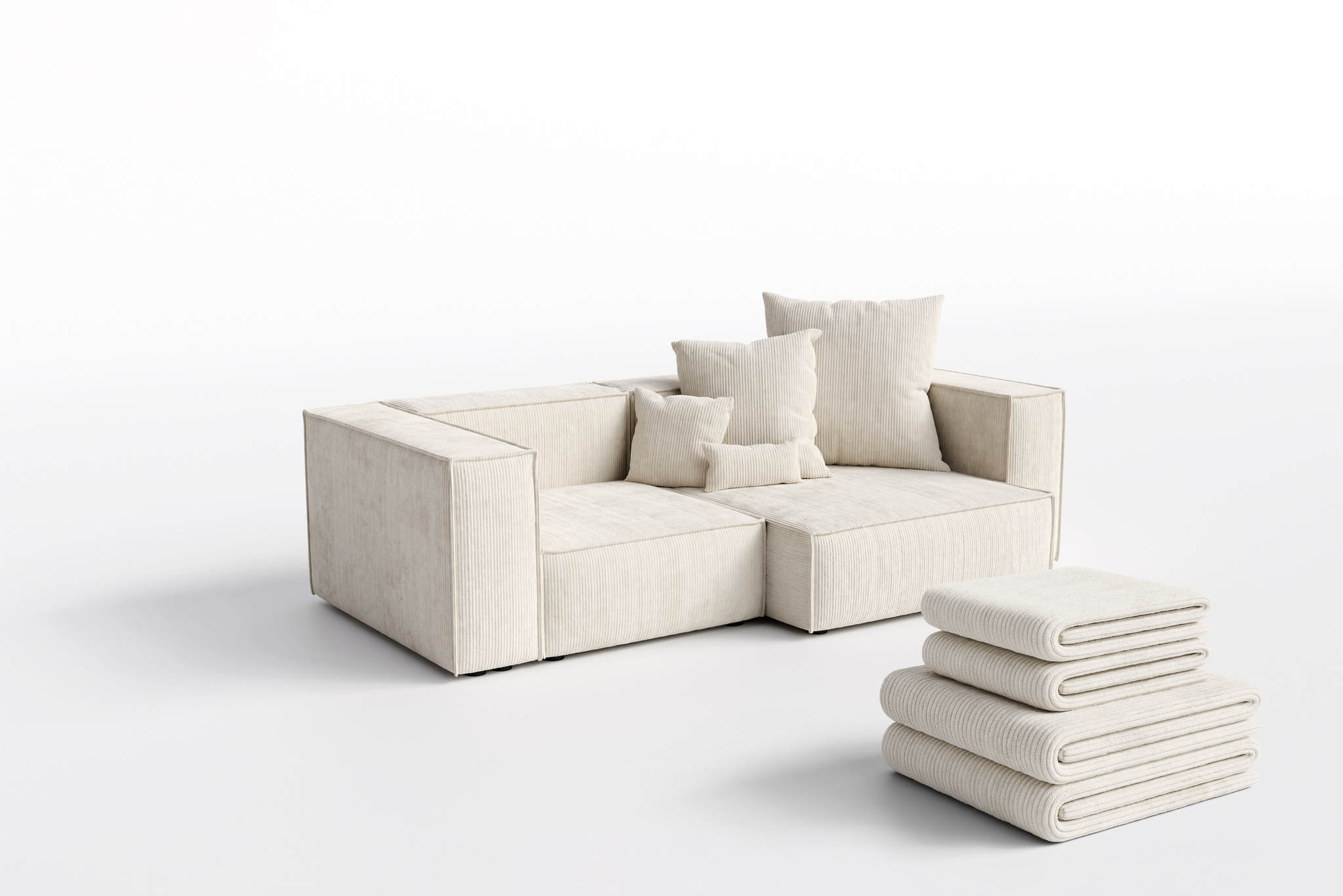 Unter dem eleganten Bezug steckt durchdachte Handwerkskunst. Wir verwenden hochwertige Schaumstoffe mit unterschiedlichen Zonen – fester an den Kanten für Halt, weicher in der Sitzfläche für maximalen Komfort. Die Unterkonstruktion aus Holz und Metall sorgt für Stabilität und Langlebigkeit, während hypoallergene Füllungen ein angenehmes Sitzgefühl schaffen. Jedes Detail ist auf Dauer ausgelegt – damit dein Sofa auch nach Jahren so bequem ist wie am ersten Tag.